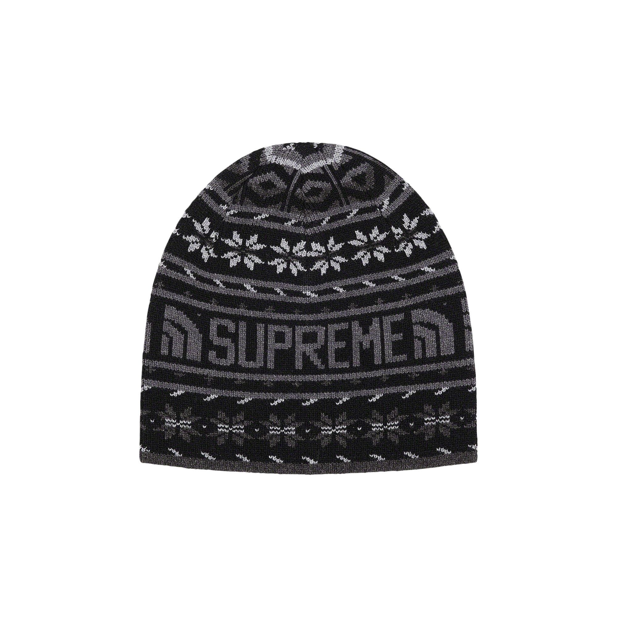 Supreme and The North Face collaborated on this beanie during the FW22 season. Crafted from merino wool, the hat is executed in black and jacquard-knitted with a logo motif.