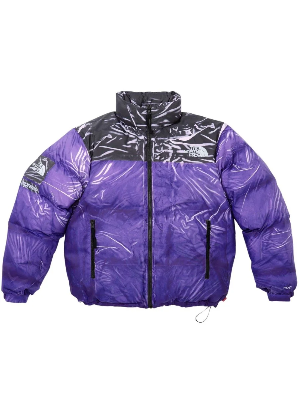 x The North Face Nuptse jacket Highlights - Purple - Front zip fastening - Padded design - Quilted finish - All-over graphic print - Logo print at the chest - Logo print at the sleeve - Stand-up collar - Two side zip-fastening pockets - Long sleeves - Elasticated cuffs - Drawstring hem Imported Composition Polyester 100%