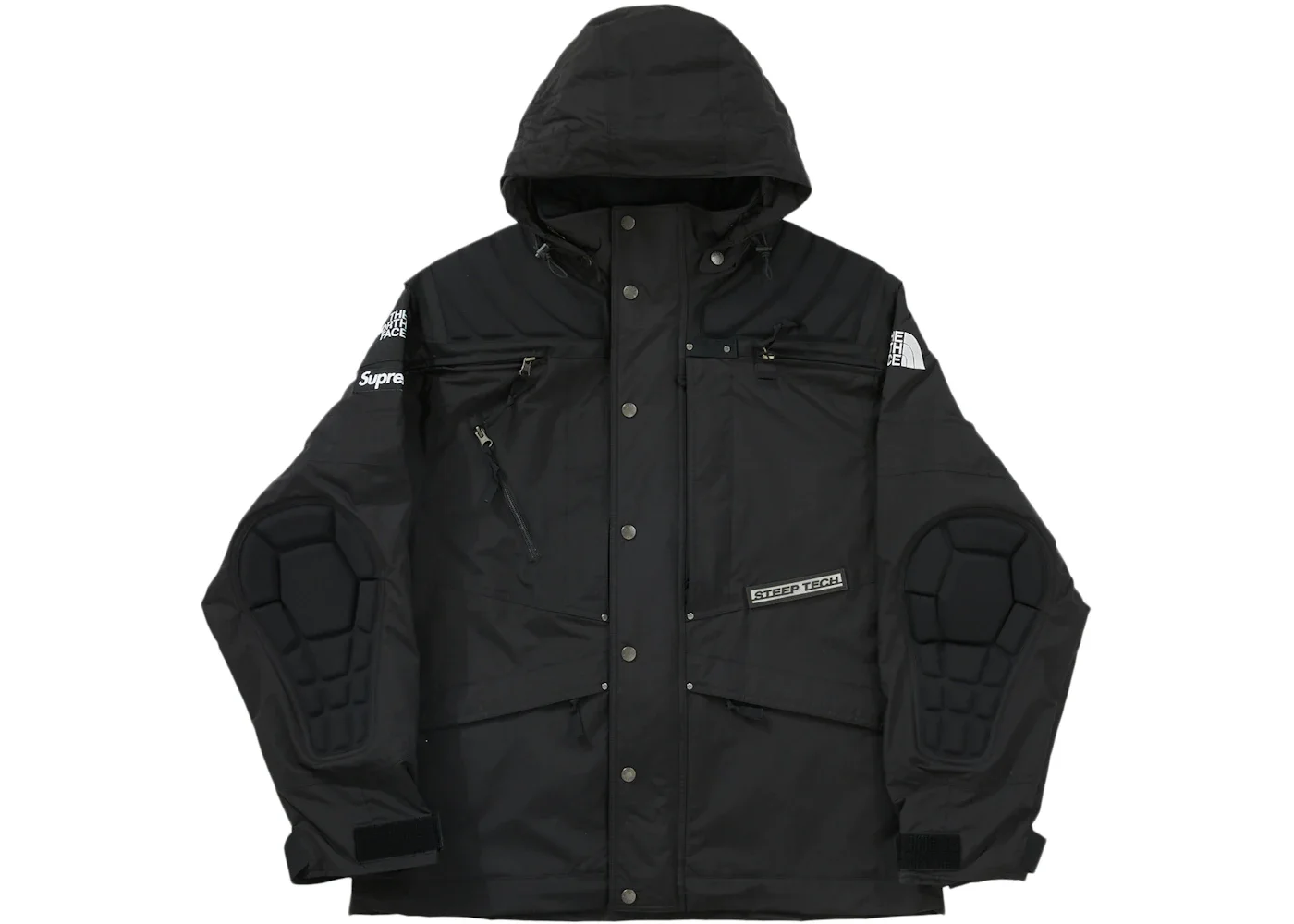 The Supreme The North Face Steep Tech Apogee Jacket (FW22) Black is a collaborative garment included in both brands' catalogs. This Steep Tech Apogee jacket has a full zip on the front with buttons and is made from a combination of nylon and polyester materials. It features black as the primary color, with the only exceptions being the Supreme and The North Face logos highlighted in white. It also has a Kevlar spinal section and elbow pads. The Supreme The North Face Steep Tech Apogee Jacket (FW22) Black was released with a retail price of $398 on the 13th of October 2022. - Season FW22 - Color Black - Release Date 2022-10-13 - Retail Price 398 - Featured false