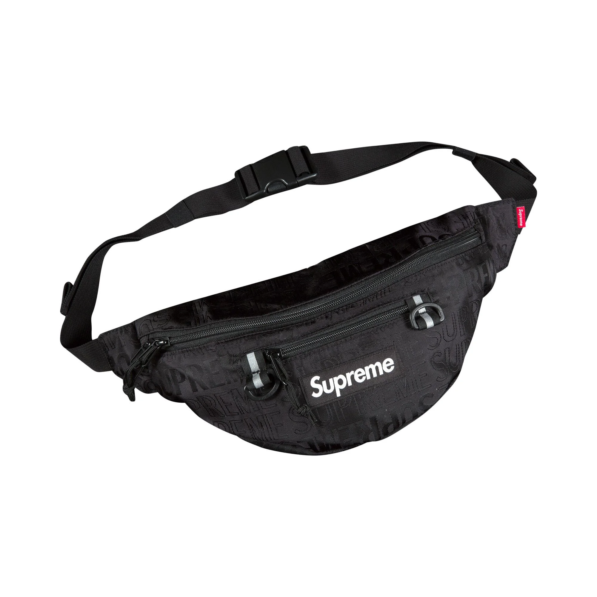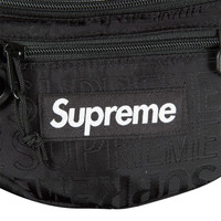 This Supreme waist bag from SS19 is made from a durable nylon blend and rendered in black. Flocked with the brand's logo on the front, it features two zips and an adjustable strap that allows for wear across the body or around the waist.