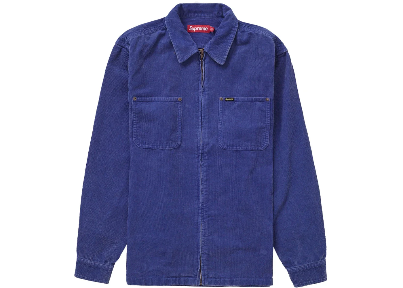 Supreme Washed Corduroy Zip Up Shirt Blue