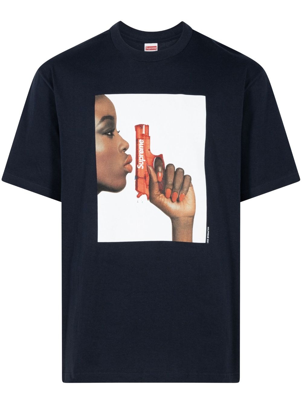 Water Pistol cotton T-shirt An iconic photograph print at the front defines Supreme's Water Pistol T-shirt. Made entirely from cotton, it features a straight and relaxed cut - as usual of the streetwear brand. Highlights - Black - Cotton - Photograph print - Crew neck - Short sleeves - Straight hem - When buying this unisex item, keep in mind that it is graded in standard men's sizing. Imported Composition Cotton 100%
