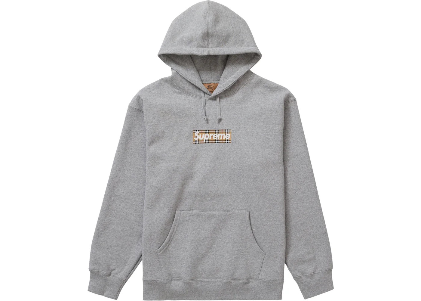 Supreme Burberry Box Logo Hooded Sweatshirt Heather Grey