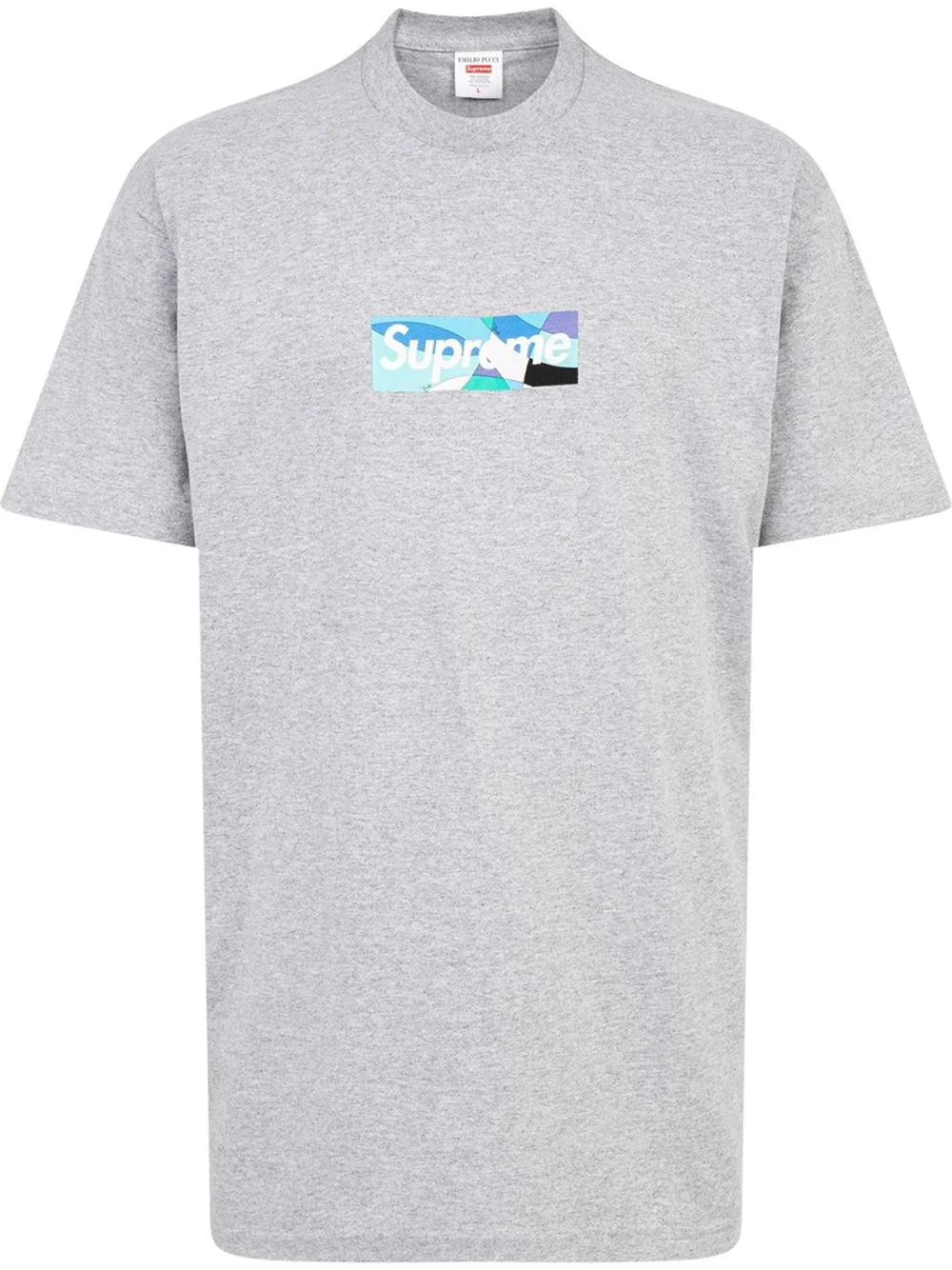 x Emilio Pucci Box Logo T-shirt The result of a collaboration between Supreme and Emilio Pucci, this T-shirt combines the iconic box logo with the archival Fantasia print, first seen in 1970. Made in United States Composition Cotton 100%