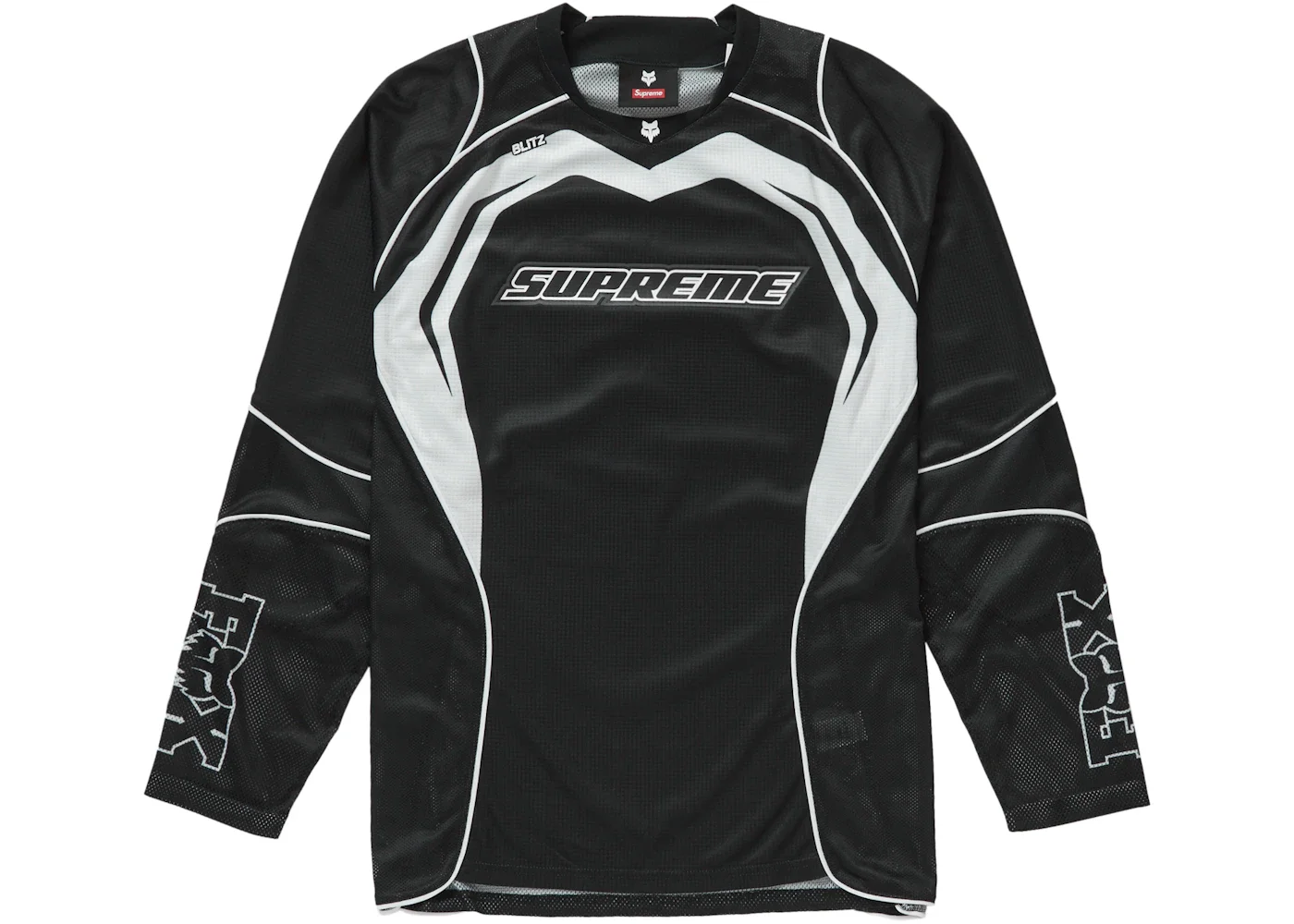 The Supreme Fox Racing Jersey Black features a black-and-white visual story of the two brands’ collaboration. Fine black polyester mesh offers the breathability and flex needed from a jersey, while a white Supreme logo and white Fox logo emblazon the chest and lower sleeves. White piping and graphic accents create the look of traditional motocross apparel. Supreme’s heritage as a skateboarding brand with a history that dates to New York City in 1994 is well known. Twenty years earlier, founder Geoff Fox created Fox Racing in Santa Clara, California. The two brands have forged parallel paths, innovating clothing for extreme sports that has also gained devoted streetwear followings. A collaboration between the two like-minded brands is only fitting, given their mutual dedication to outfitting their athletes in functional yet wearable clothing. With its lightweight breathability, the Supreme Fox Racing Jersey Black seamlessly goes from the streets to the track. Our experts feel that the best feature is its reflective elements by 3M, which enable you to be seen. The Supreme Fox Racing Jersey Black released on October 12, 2023, and retailed at $148. - Season FW23 - Color Black - Release Date 2023-10-12 - Retail Price 148 - Featured false - Uploaded By LL