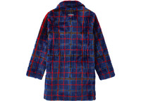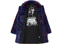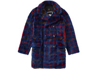 Supreme Jean Paul Gaultier Double Breasted Plaid Faux Fur Coat Blue