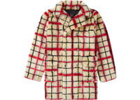 Supreme Jean Paul Gaultier Double Breasted Plaid Faux Fur Coat OffWhite
