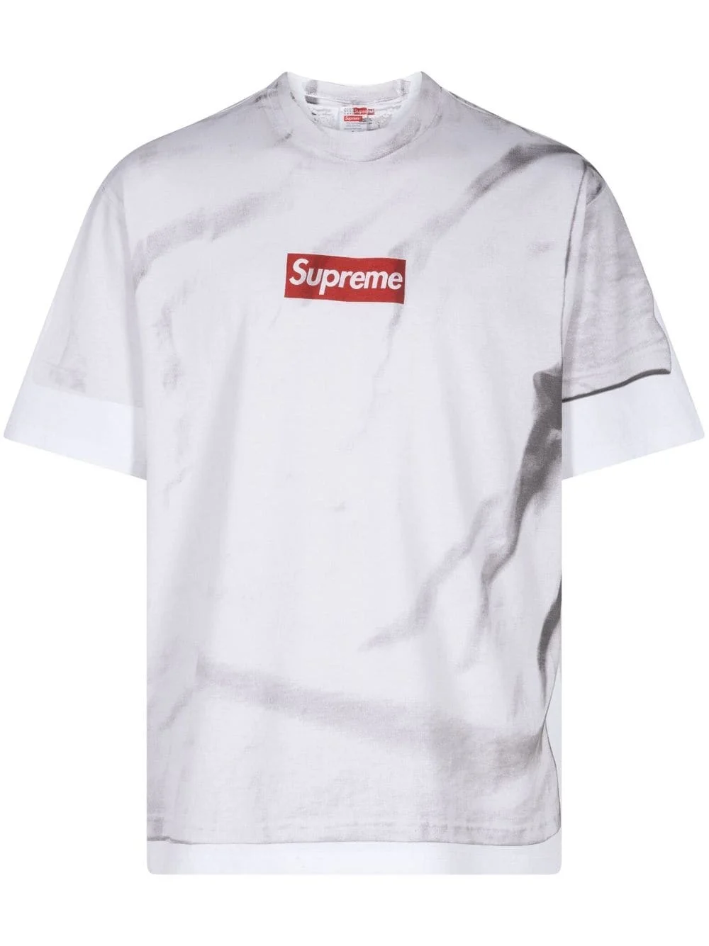 x MM6 Maison Margiela box logo T-shirt Highlights - White - Cotton - Signature box logo - All-over graphic print - Crew neck - Short sleeves - Straight hem - When buying this unisex item, keep in mind that it is graded in standard men's sizing. Imported Composition Cotton 100%
