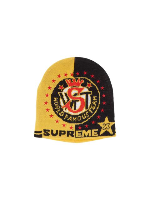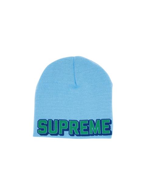 Supreme and New Era's Varsity Beanie features collegiate-style lettering printed across the front. Designed in a subdued green colorway, the knitwear piece is from FW23 and embroidered with each brand's logo.
