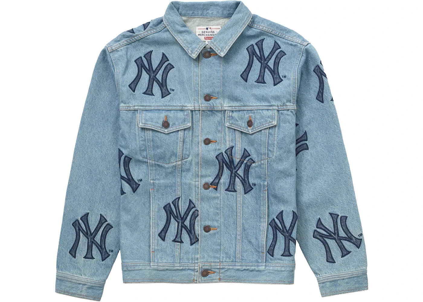 Supreme x New York Yankees Denim Trucker Jacket Washed Blue