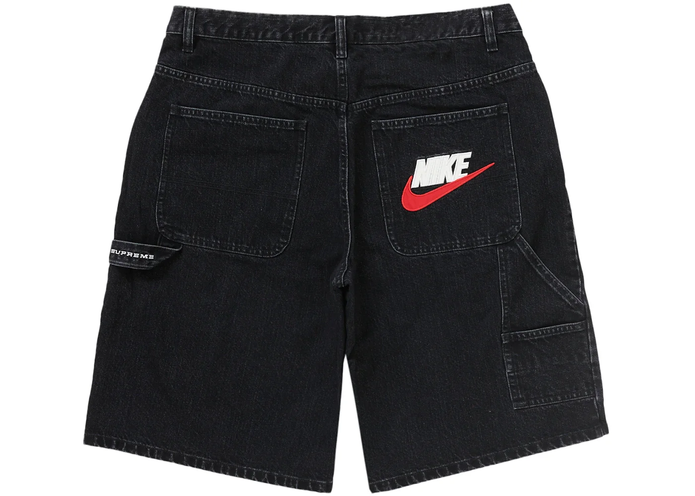 The Supreme Nike Denim Short in black boasts a classic design, with a 5-pocket style and button fly. The shorts' denim fabric and tonal stitching are a timeless element of denim design, while the Supreme logo embroidery adds a subtle touch of branding. The black Denim Short by Supreme & Nike features a hardy structure with thick denim fabric that resists wear and tear. The shorts' hardware, including the button fly and rivets, is reinforced for added durability. The clean design and lack of excessive embellishments create a timeless silhouette that works well for both casual and dressed-up occasions. One of the things we love about the Supreme & Nike Denim Short in black is the cotton-polyester denim blend, which provides a comfortable fit while still maintaining its shape. Additionally, the durable bar tacks reinforce stress points like the pocket corners and fly, adding strength to high-wear areas. When this debuted on April 18, 2024, its retail price was $128. - Season SS24 - Color Black - Release Date 2024-04-18 - Retail Price 128 - Featured false - Requester Kelsey K - Uploaded By LL