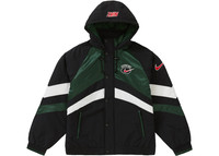 After releasing a collaborative Nike Air Max Tailwind 4 early in their 2019 season, Supreme and Nike have returned for a second release in SS19, this time featuring apparel. Despite being released in May, the collection mostly featured items you'd see in a fall/winter release, including sweaters, hoodies, and sport jackets, all of the vintage looking variety. The water resistant Supreme x Nike Hooded Sport Jacket released in three colorways and feature a quilted inner lining as well as a removable hood. The green, purple, and silver jackets dropped on Thursday, May 23rd, 2019 and retailed at $248 USD. - Season SS19 - Color Green - Release Date 2019-05-23 - Retail Price 248 - Featured false