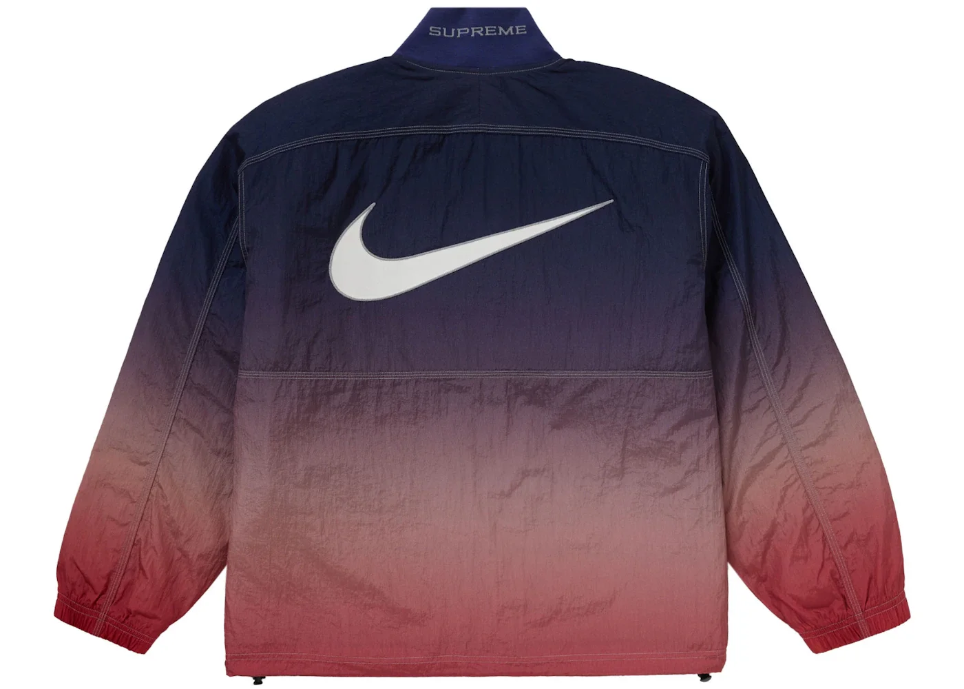 The Supreme Nike Ripstop Pullover Multicolor is a multicolor pullover made with nylon ripstop and produced in tandem by the streetwear brand Supreme and footwear and athletic apparel giant Nike. Three colorways of this co-branded Nike and Supreme ripstop pullover were released, and this iteration is the vibrant multicolor version. A matching track pant was sold separately and released at the same time as the pullover. Outside, the pullover presents with a half-zip that has a reflective Nike Swoosh right below it. Gradient colors radiate from dark blue on the top part to a reddish hue at the waist. The soft knit rib neck features Supreme branding on the back, while a large white Swoosh adorns the back of the pullover. StockX experts think that the quilted taffeta lining inside the pullover provides the right amount of insulation while being smooth and comfortable. The Supreme Nike Ripstop Pullover Multicolor debuted to the public on April 18, 2024, at a retail price of $168. - Season SS24 - Color Multicolor - Release Date 2024-04-18 - Retail Price 168 - Featured false - Requester Kelsey K - Uploaded By LL