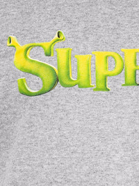 x Shrek T-shirt Supreme loves to be bold with its unconventional designs and random collaborations, and for the AW21 collection, the brand has revealed one that no one expected - a special collaboration with Shrek. The logo of the American computer-animated comedy film stands out on the chest of this short-sleeve T-shirt crafted from grey cotton. Made in United States Composition Cotton 100%