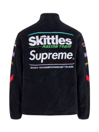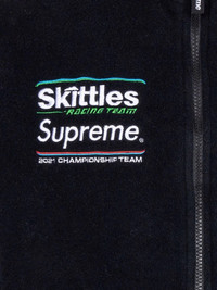 x Skittles Polartec jacket Designed in partnership with Skittles and Polartec, this fleece jacket from Supreme's AW22 collection is highlighted with embroidered logos and graphics throughout. Its black design features a high neck and zip hand pockets at the lower front. Imported Composition Polyester 100%