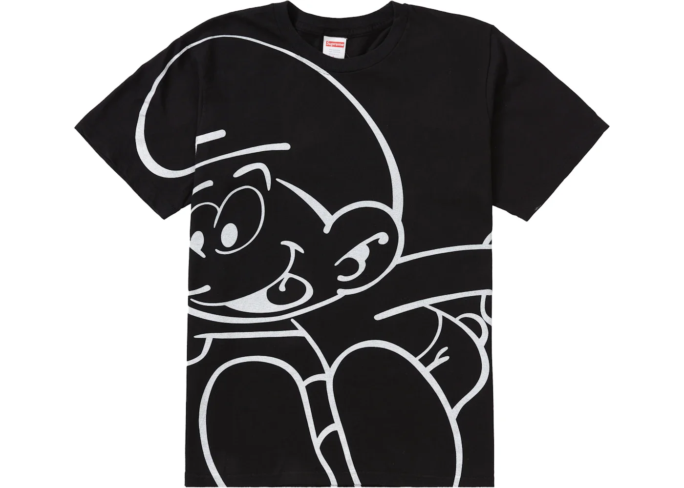 Just one week after Supreme's official collaboration with the Smurfs was released, the brand released a Smurfs t-shirt as a part of the FW20 fall tees delivery. This t-shirt features a gigantic graphic of a Smurf jumping on the front of the garment and a Supreme logo on the back of the shirt. This Supreme t-shirt was released in XXX different colors. The black Supreme Smurfs t-shirt dropped on October 8th, 2020, and retailed for $48 USD. - Season FW20 - Color Black - Release Date 2020-10-08 - Retail Price 48 - Featured false