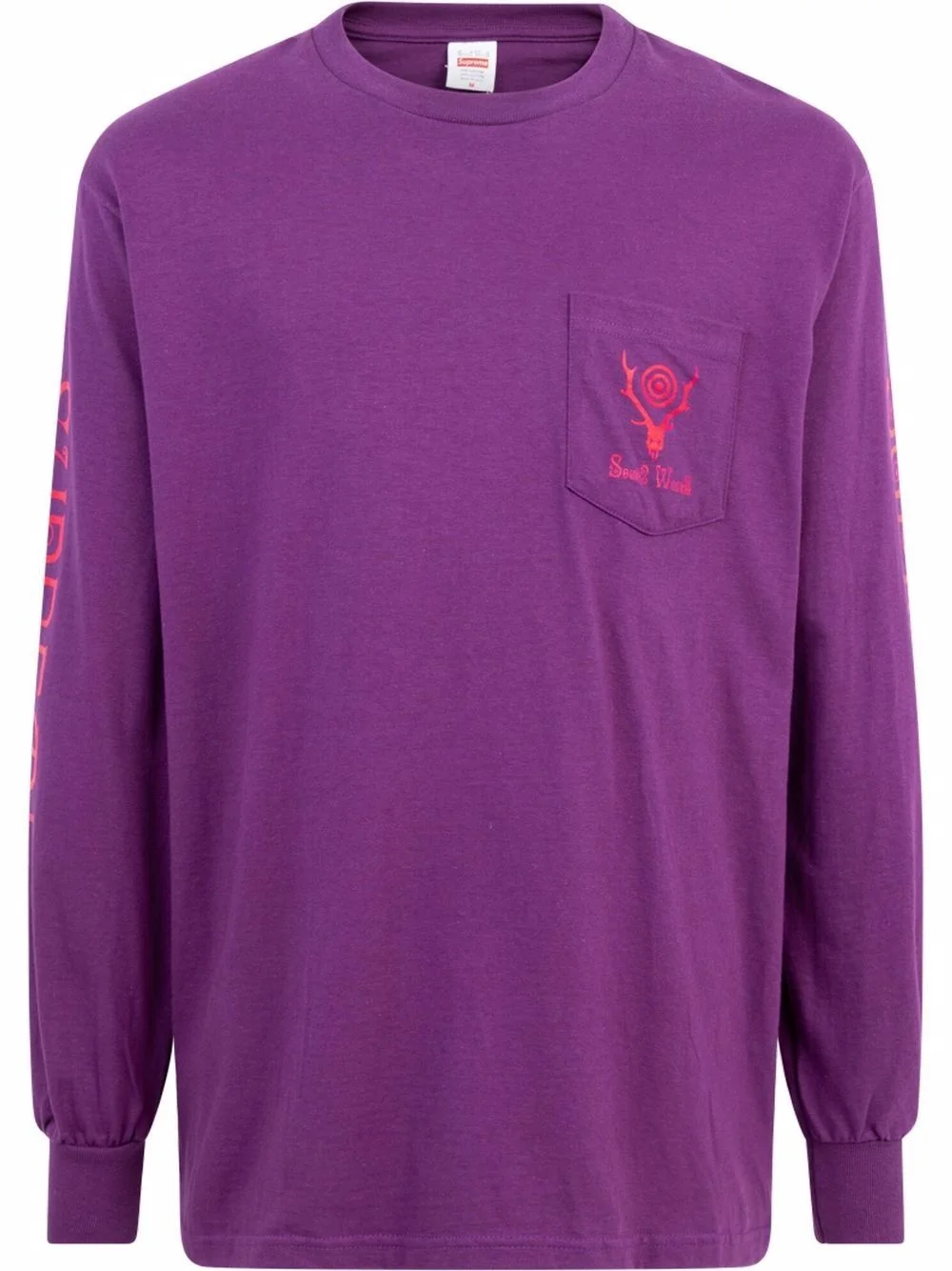 South2 West8 long-sleeve T-shirt Supreme's love for all things adventure extends outwards with this T-shirt. Designed in collaboration by Japanese fishing-inspired brand South2 West8, the purple cotton design is anchored with both logos across the sleeves and front pocket for a stamp of approval. Highlights - Purple - Cotton - Logo print at the chest - Graphic print to the rear - Chest patch pocket - Round neck - Long sleeves - Straight hem - When buying this unisex item, keep in mind that it is graded in standard men's sizing Made in United States Composition Cotton 100%