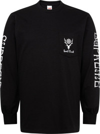 x South2 West8 long-sleeve pocket T-shirt Supreme's love for all things adventure extends outwards with this T-shirt. Designed in collaboration by Japanese fishing-inspired brand South2 West8, the black cotton design is anchored with both logos across the sleeves and front pocket for a stamp of approval. Made in United States Composition Cotton 100%