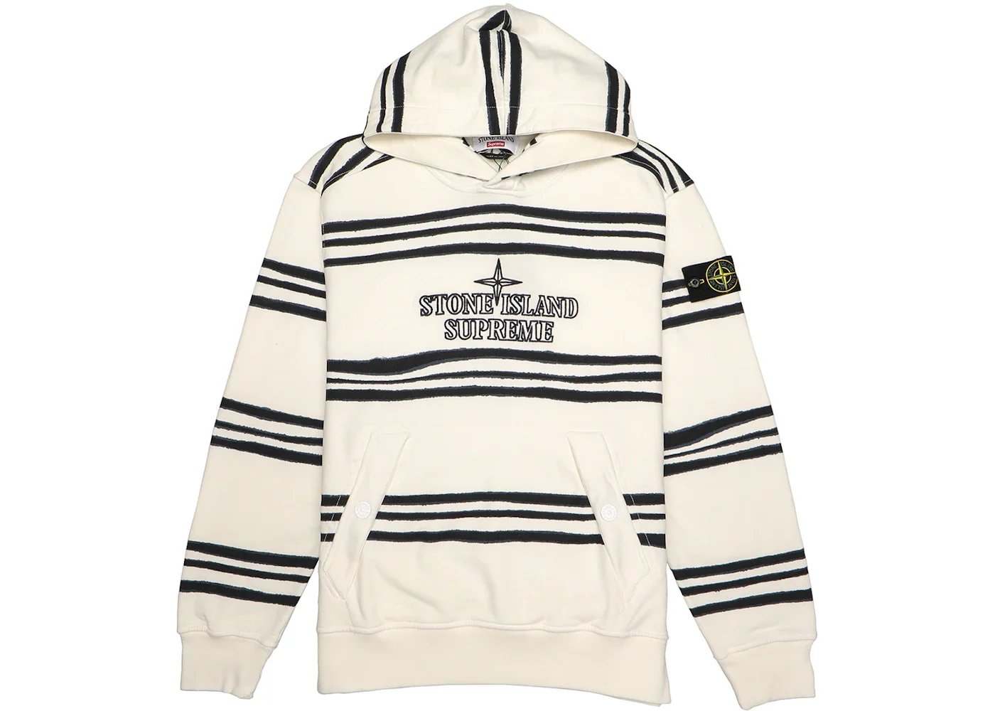 Supreme Stone Island Warp Stripe Hooded Sweatshirt White