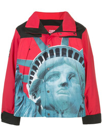 x The North Face "Statue Of Liberty" mountain jacket Dreaming of a city break? Supreme and The North Face transport you to New York City with this red Mountain Jacket that boasts the Statue Of Liberty's head printed on the front and back. Ready to go? Featuring a photographic print, a detachable hood, a funnel neck, a button over front zip fastening, long sleeves and a logo to the arm. Imported Composition Nylon 100%, Polyester 100% SIZE & FIT Model measurements Height 6 ft 1 in(1.85 m) Bust/Chest 39.76 in(101 cm) Hips 36.61 in(93 cm) Waist 27.95 in(71 cm) Washing instructions Machine Wash