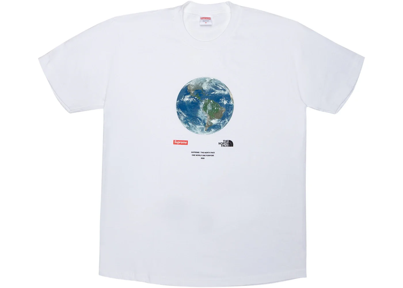 Supreme and The North Face's One World Tee released as a part of the brand's SS20 Week 13 drop and would be the second time that season that the two would collaborate. The t-shirt features Supreme and The North Face Cobranding as well as an image of the earth. The Supreme The North Face One World Tee released on May 21st, 2020, and retailed for $58 USD. - Season SS20 - Color White - Release Date 2020-05-21 - Retail Price 54 - Featured false