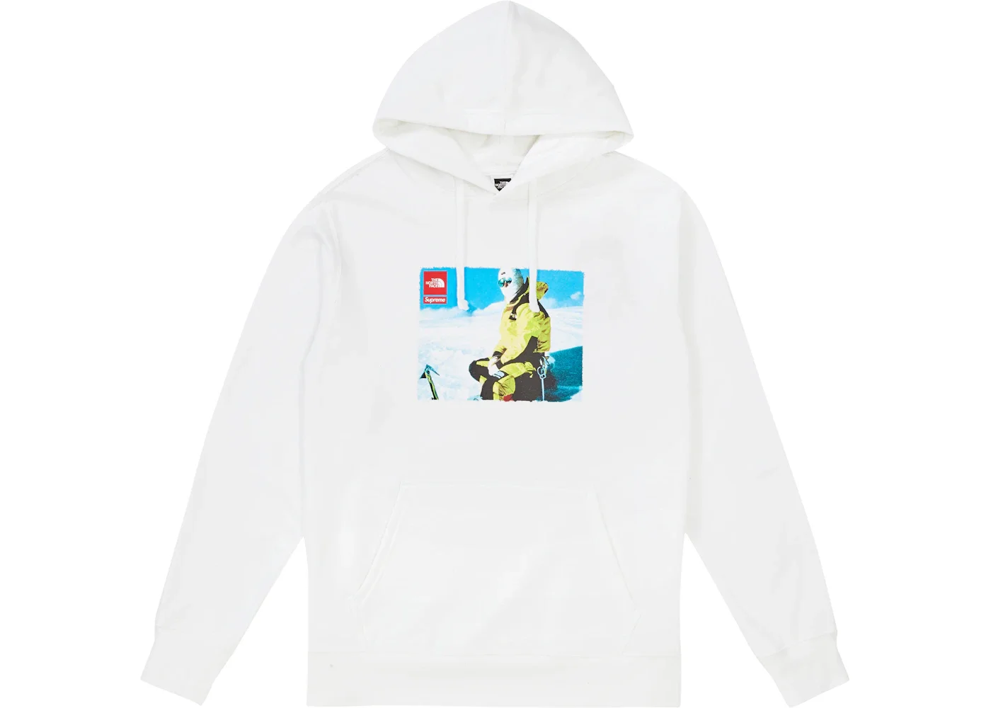 The Supreme The North Face Photo Hooded Sweatshirt White is a pullover hooded garment in bright white with a full-color image printed on the front. The image is of a man in yellow and black The North Face outdoor clothing sitting in a snowy landscape. Supreme's classic red box logo and a red The North Face logo appear in the upper left corner of the image. New York City’s Supreme has a reputation around the world for its smart and timeless take on skateboarding clothing and gear, which has led the company to collaborate with numerous titans of the industry. This white Photo-Hooded sweatshirt has long sleeves and drawings in the hood for adjustment. The ribbed cuff adds to the overall aesthetic of the piece. In our opinion, the best feature of the Photo Hooded Sweatshirt is its image, which is evocative and relatable. The Supreme The North Face Photo Hooded Sweatshirt White was released on November 29, 2018, and retailed at $138. - Season FW18 - Color White - Release Date 2018-11-29 - Retail Price 138 - Featured false