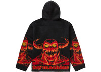 The Supreme x Toy Machine Zip Up Hooded Sweater Black is a warm sweater with a full zip closure with bold knitted graphics. This iteration of the Supreme x Toy Machine Zip Up Hooded Sweater comes in a black colorway. The front of the sweater bears a red devil figure taking up the whole bottom half. The figure is smiling, showing his jagged teeth, and has yellow eyes. The same figure appears on the bottom half of each sleeve. The back of the sweater has the same design, but underneath the devil figure the words ‘toy machine’ are printed in red. The sweater features the Supreme brand name across the hood in red. What we like best about this sweater is the soft brushed acrylic construction. The fuzzy material adds a touch of coziness and extra comfort to the sweater. The Supreme x Toy Machine Zip Up Hooded Sweater Black was introduced on March 7, 2024, for a retail price of $228. - Season SS24 - Color Black - Release Date 2024-03-07 - Retail Price 228 - Featured false - Requester Kelsey K - Uploaded By LL