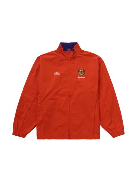 The Supreme Umbro Cotton Ripstop Track Jacket Black is a track jacket with a black cotton ripstop shell, mesh lining, and taffeta sleeve lining. Functional details include lower front pockets with seam zippers, elastic shock cords at the waist, and a deep green rib knit collar. Supreme and Umbro contrast branding is embroidered on the front left and right, with the Supreme monochrome embroidered logo on the back. Cult streetwear and skateboarding brand Supreme has a long history of collaborations, where the brand has applied its design sense to everything from high-fashion apparel to a humble brick. So it’s only natural that Supreme would team up with football, futsal, and rugby brand Umbro, which began in England in 1924 and has outfitted athletes and admirers ever since. In our opinion, the best feature of the Supreme Umbro Cotton Ripstop Track Jacket Black is its subtle and stylish branding, which has just the right amount of panache to get noticed. The Supreme Umbro Cotton Ripstop Track Jacket in Black was released on September 21, 2023, and retailed at $188. - Season FW23 - Color Black - Release Date 2023-09-21 - Retail Price 188 - Featured false - Uploaded By LL