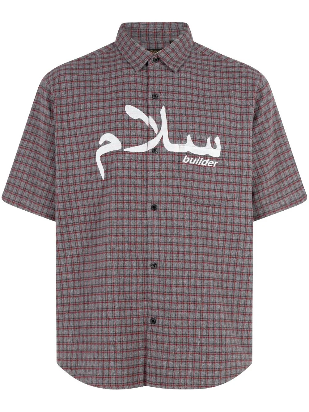x UNDERCOVER short-sleeve flannel shirt This Supreme short-sleeve flannel shirt was created in collaboration with UNDERCOVER - a luxury streetwear and avant-garde fashion brand founded by Japanese designer Jun Takahashi in 1990. Arriving in a grey hue, it features a check pattern elevated with branding details at the rear. Highlights - Grey - Flannel - Slogan print to the front - Logo print to the rear - Check pattern - Chest patch pocket - Classic collar - Front button fastening - Short sleeves - Curved hem - When buying this unisex item, keep in mind that it is graded in standard men's sizing Imported Composition Flannel 100% Washing instructions Read Manufacturer Guidelines