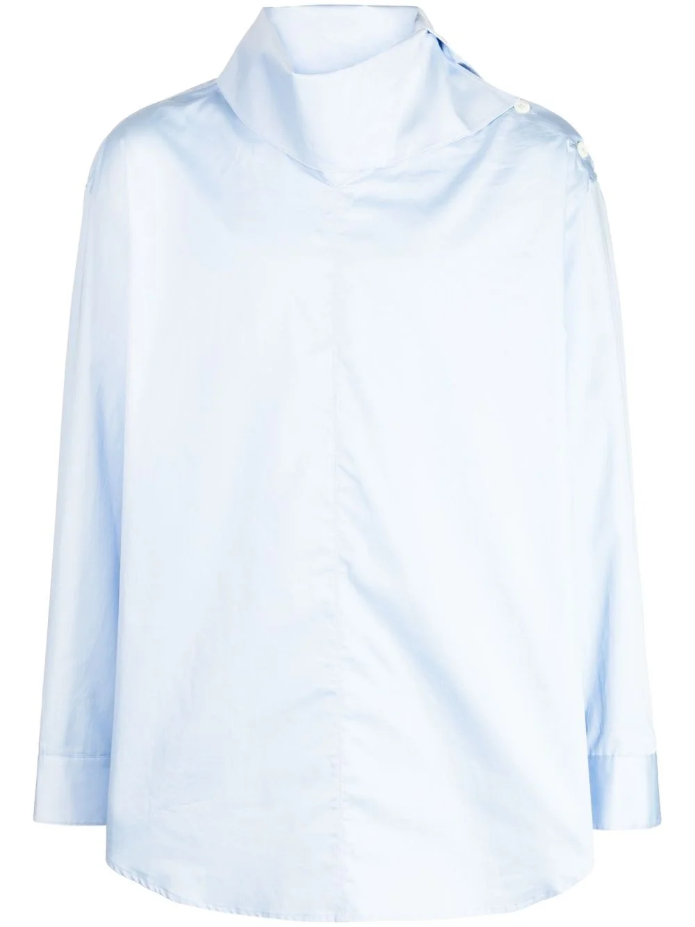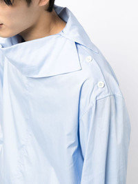 oversize-pointed collar cotton shirt Highlights - Light blue - Cotton - Oversized pointed collar - Button fastening at the shoulder - Long sleeves - Buttoned cuffs - Curved hem Imported Composition Cotton 100% SIZE & FIT Model measurements Height 6 ft 2 in(1.87 m) Bust/Chest 34.25 in(87 cm) Hips 36.22 in(92 cm) Waist 29.52 in(75 cm) FittingInformation Designed for a boxy fit, intended for a loose fit throughout Made from a midweight non-stretch fabric This piece fits true to size – take your usual size Washing instructions Dry Clean Only