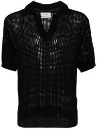 Skashi open-knit polo shirt Highlights - Black - Open knit - Ribbed-knit edge - V-neck - Polo collar - Short sleeves - Straight hem Imported Composition Rayon 64%, Nylon 36%
