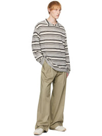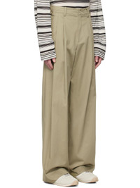 Wide-leg cotton-blend twill trousers. · Belt loops · Adjustable cinch tabs at waistband · Four-pocket styling · Zip fly · Pleats at front · Partial plain-woven lining Available exclusively at SSENSE. Supplier color: SG Body: 72% cotton, 28% polyester. Lining: 80% polyester, 20% cotton. Made in South Korea 251494M191016