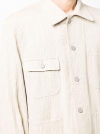 textured-effect shirt jacket Highlights - Cotton blend - Light beige - Textured finish - Long sleeves - Chest flap pocket - Three front patch pockets - Front button fastening Imported Composition Cotton 84%, Cupro 16% SIZE & FIT Model measurements Height 6 ft 2 in(1.87 m) Bust/Chest 34.25 in(87 cm) Hips 36.22 in(92 cm) Waist 29.52 in(75 cm) FittingInformation Designed to be unstructured, offering a loose fit throughout Made from a midweight non-stretch fabric This piece fits true to size – take your usual size