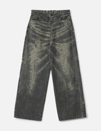 - TAAKK - Type 2 Wide Denim - Brand's standard denim - Wide leg - Jacquard pattern - Button fly - 5-pocket - Hairy leather patch on back - Made in Japan - Color: Gray - Material: 100% Cotton - See more Jeans and Clothing - Model wears size 2 - Model measures: Height 186cm, Chest 34”/86cm, Waist 28”/71cm, Hip 36”/91cm - Vendor Code: TA25AW-PT032