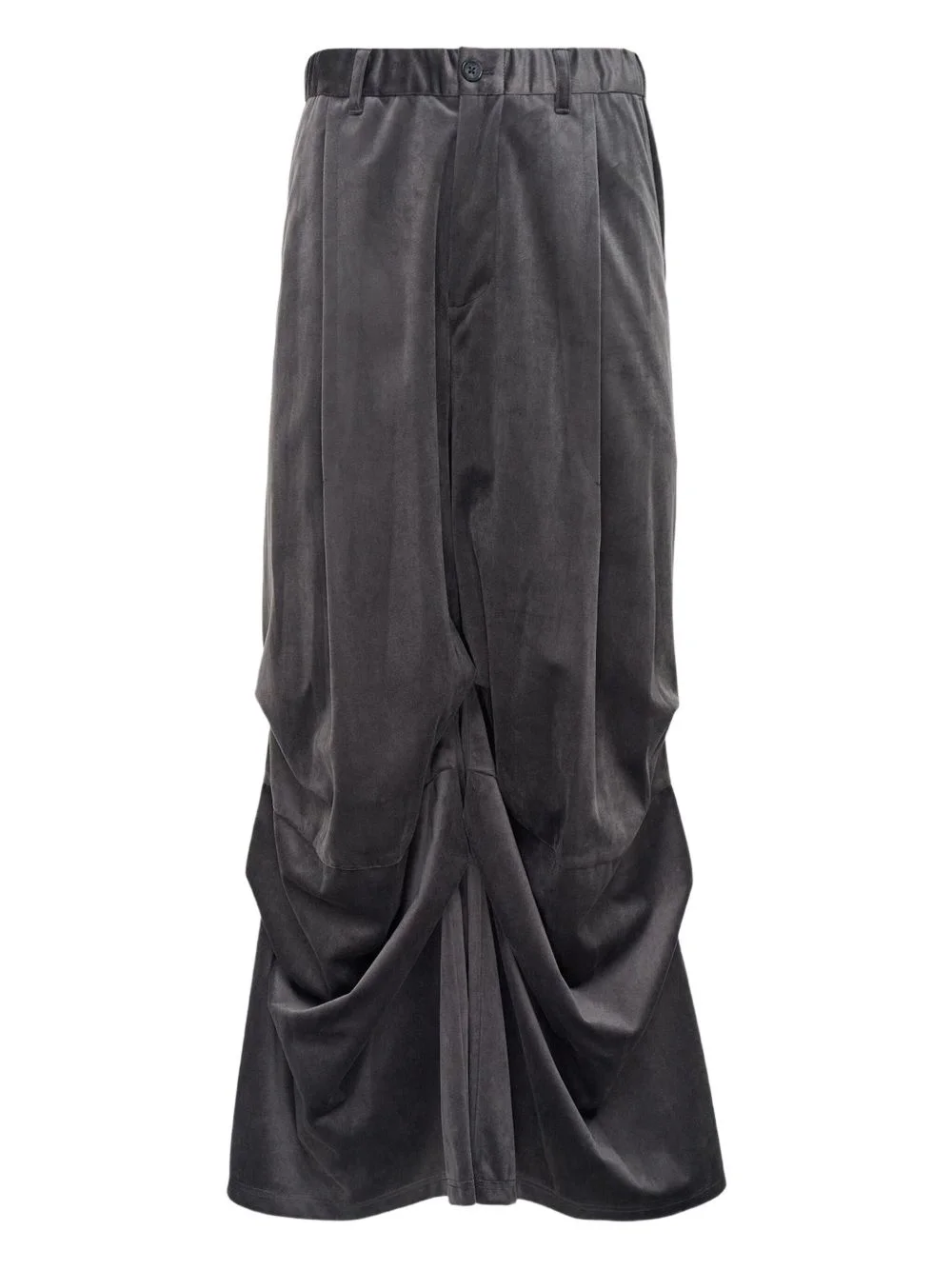 velvet trousers Highlights - Grey - Rear patch pockets - Front button closure - Draped detail Imported Composition Polyester 100%, Rayon 100% Washing instructions Hand Wash