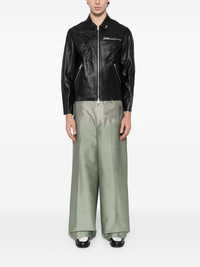 wide-leg pants Highlights - Mint green - Concealed front zip fastening - Two side flap pockets Imported Composition Outer: Wool 71%, Nylon 29% Lining: Polyester 100% SIZE & FIT Model measurements Height 6 ft 3 in(1.9 m) Bust/Chest 19.29 in(49 cm) Hips 38.58 in(98 cm) Waist 32.28 in(82 cm) FittingInformation Designed with a wide leg, offering a loose and roomy fit Adjust this piece’s waistband to your preference using the drawstring Made from a midweight non-stretch fabric Washing instructions Dry Clean Only