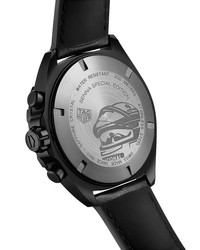 PRODUCT DETAILS - Black DLC stainless steel; leather - Case size: 43mm - Folding clasp with double safety push buttons - Water resistant to 20 ATM - Swiss quartz chronograph - Gray dial with date display at 4 o'clock - Three sub-dials and tachymeter bezel - Black leather strap with tire tread pattern - Manufacturer's 2-year limited warranty - Photo may have been enlarged and/or enhanced - Made in Switzerland Web ID: 4314308