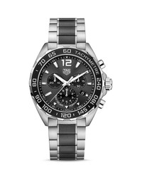 SIZE & FIT - In 1860, Edouard Heuer started designing timepieces in Saint-Imier, Switzerland at the age of 20. The crown-operated, keyless winding system was his first patent, - which changed the course of watchmaking history. Continuing his pioneering legacy, the Swiss luxury brand has gone on to introduce numerous innovative patents - and timeless designs, deeming it one of the most advanced and luxurious watchmakers in the world. PRODUCT DETAILS - From the TAG Heuer Formula 1 collection - This quartz chronograph inherits the cutting-edge timing technology of TAG Heuer's partnership with Formula 1. - The elegant anthracite grey dial sports luminous markers, hands and XL "12" for instant visibility. - The fixed tachymeter bezel is notched and fluted in quintessential racing style for smooth handling. - Steel and ceramic bracelet is secured with a double safety folding clasp to ensure it stays on the wrist - Stainless steel; ceramic; sapphire crystal - Case size: 43mm - Deployant buckle closure - Water resistant to 20 ATM - Quartz chronograph movement - Black dial; date display at 4 o'clock - Stainless steel bracelet with ceramic links - STYL #CAZ1011.BA0843 - Manufacturer's 2-year limited warranty - Photo may have been enlarged and/or enhanced - Made in Switzerland Web ID: 1726900