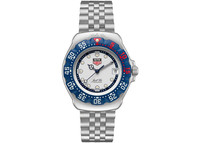 TAG-Heuer x Kith Formula 1 Los Angeles WA121P-BA0023 was released as part of the "Just Us" limited edition collection. This is a luxurious watch with a sporty flair. It is designed by Kith, a famous streetwear clothing brand, and pays homage to car racing with its eggshell, blue, and red color scheme. This designer watch has the "Just Us" slogan printed on its face, along with the official Kith/Heuer logo at the top. Other features it offers include quartz movement and a display showing the hours, minutes, seconds, and dates for better timekeeping. It is also 200 meters water-resistant, making it safe to wear during water sports. The folding clasp with double safety buttons on your TAG-Heuer x Kith Formula 1 Los Angeles WA121P-BA0023 provides a security and lock mechanism. Our team most admires its stainless-steel bracelet with five rows. This watch was released on May 6, 2024, at $1,500. - Reference Number WA121P-BA0023 - Case Size 35mm - Case Material Rubber - Band Stainless - Movement Quartz - Dial Eggshell - Retail Price 1500 - Base Model x Kith Formula 1 Los Angeles - Featured false - Requester Rachel M - Styles Sport - Uploaded By VL