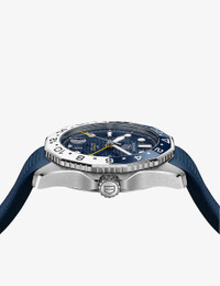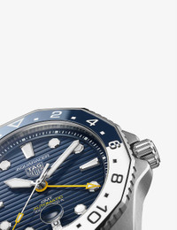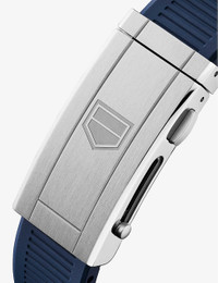 PRODUCT DETAILS - TAG Heuer stainless steel and rubber automatic watch - 100% stainless steel; 100% rubber - Style number: WBP2010.FT6198 - Folding clasp fastening - Geometric dial, ceramic bezel, blue-lacquered face, scratch-resistant sapphire crystal glass, hand-applied polished and faceted indexes with luminescent markers, hour, minute and second hands, calendar aperture at 6 o'clock, 50hr power reserve, calibre 7 automatic movement - Case diameter: 43 mm - Wipe with a clean, dry cloth - Water resistance: 3 bar / 3 atm / 30 m / 100 ft - Made in Switzerland - Two-year manufacturer's warranty