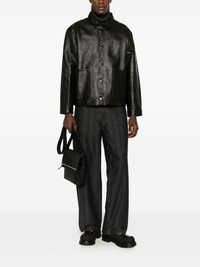 leather shirt jacket Highlights - Black - Point collar - Front button fastening - Two front patch pockets - Long sleeves - Buttoned cuffs Imported Composition Horse Leather 100% SIZE & FIT Model measurements Height 6 ft 3 in(1.9 m) Bust/Chest 35.43 in(90 cm) Hips 35.82 in(91 cm) Waist 27.95 in(71 cm) Washing instructions Read Manufacturer Guidelines
