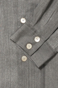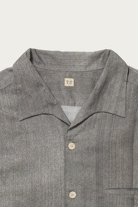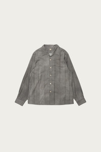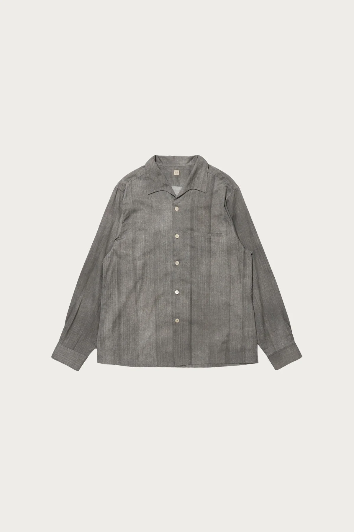 The Lot. 108 Shirt takes its cues from post-war Italian collar shirts that became popular at resorts during the economic boom of the 1950s. Distinguished by a collar line that curves more deeply than a standard open collar, the style was designed to capture a sense of ease and leisure before T-shirts had entered resort culture. This version carries forward that relaxed refinement in a fabric unlike any other. Crafted from a cotton-rayon kasuri-patterned base, the cloth has been hand-painted with sumi ink in collaboration with artisans inspired by the marbling works of Kamisoe, a traditional karakami workshop in Kyoto. Each brushstroke is applied by hand in the style of Yuzen dyeing, meaning no two shirts are alike. The subtle variations in shading and movement make every piece one of a kind. - 60% Cotton / 40% Rayon - Inspired by 1950s Italian resort shirts - Curved Italian collar, more open than traditional camp collars - Original kasuri-patterned fabric hand-painted with sumi ink - Each piece uniquely finished with individual brushstrokes - Made in Japan During the post-war economic boom, Italian collar shirts were popular at resorts.Characterized by the opening curvier than open collar shirts, it was a perfect item to look relaxed when T-shirts were still not part of the resort culture.Inspired by marbling works created with sumi ink by Kamisoe, a karakami workshop based in Kyoto, we hand-painted our original kasuri-patterned cotton- rayon fabric with sumi ink to capture the subtle nuances of brushstrokes crafted by a Yuzen dyeing artisan. Each piece is truly one of a kind, as the hand-drawn brushstrokes and variations in shading differ slightly from item to item. 60% COTTON 40% RAYON