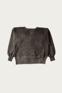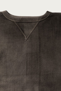 The Lot.603 Sweatshirt is Taiga Takahashi’s homage to the beginnings of American sportswear, rooted in the years before synthetics reshaped casual clothing. Its flat, direct-cut silhouette recalls the practical simplicity of early sweatshirts, and details like the double V gussets at front and back of the neck are reconstructed with historical accuracy. The fabric itself is something special: a tubular jersey knit from American cotton on a century-old hanging knitting machine in Wakayama, the last of its kind still operating. Producing only a meter of fabric per hour, it yields a dry hand and subtle unevenness, as if the air itself were part of the cloth. The Lot.603 comes in finishes that highlight traditional Japanese dyeing and artistry. Mud Dyed Brown and Sumi Dyed Black are carefully dyed one by one, each carrying tonal depth and variation. Hand Drawn Sumi pieces are even more distinct, with sumi ink brushstrokes applied by Kyoto Yuzen artisans in collaboration with karakami workshop Kamisoe. No two are alike, every sweatshirt carrying its own landscape of ink, texture, and atmosphere.