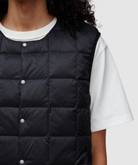 Embrace the turn of the season with the Crew neck down vest gilet from Japan-based outerwear experts TAION. Designed to be worn as a standalone or a versatile, layering piece, look to this latest offering for finessing touch of minimalism to your everyday style. • Regular fit • Crewneck • Full button closure • Dual front slip pockets • Down-filled • 95% Feather Down 10% Lining • 100% Nylon • Item code: TAION-004 BLK Product Information • 4082682