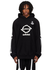 French terry hoodie. · Drawstring at hood · Graphic patch at chest · Logo printed at front · Kangaroo pocket · Rib knit hem and cuffs · Graphic appliques at raglan sleeves Supplier color: Black/White Body: 100% cotton. Trim: 100% polyester. Made in Japan 241970M202001