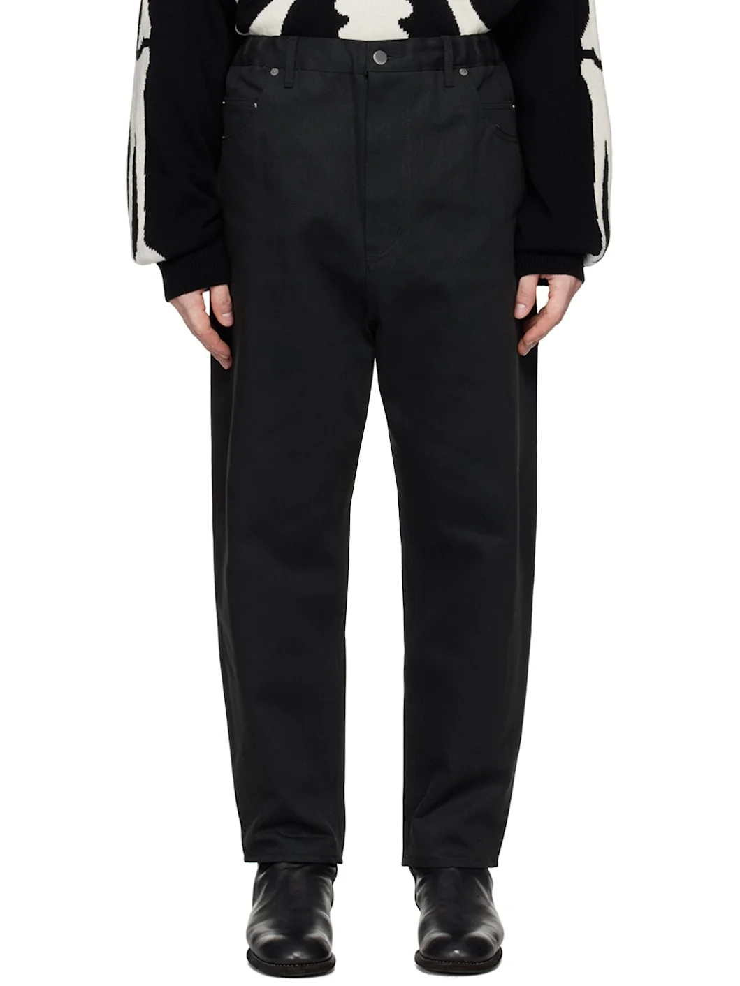 Loose-fit stretch denim jeans. · Belt loops · Concealed drawstring at elasticized waistband · Six-pocket styling · Zip-fly · Logo-engraved silver-tone hardware Supplier color: Black