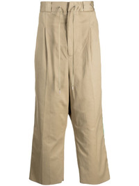 drawstring-waist drop-crotch trousers Highlights - Khaki - Cotton blend - Drawstring fastening waist - Concealed front fastening - Drop crotch - Straight leg - Two side slit pockets - Two rear welt pockets Imported Composition Cotton 80%, Polyester 20%
