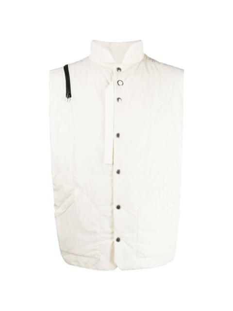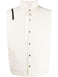 zip-detail padded gilet jacket Highlights - Cloud white - Decorative zip detailing - Band collar - Front press-stud fastening - Padded design - Sleeveless - Straight hem Imported Composition Nylon 100% Washing instructions Dry Clean Only