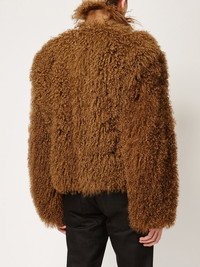 furry bomber jacket Brown calf leather, wool-cashmere blend and lamb fur furry bomber jacket from The Soloist. Imported Composition Outer: Calf Leather 100%, Lamb Fur 100%, Wool 90%, Cashmere 10% Lining: Cupro 100% Washing instructions Specialist Cleaning