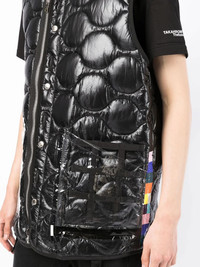 quilted transparent pocket gilet black quilted finish transparent pockets front button and zip fastening V-neck sleeveless Imported Composition Nylon 100% SIZE & FIT Model measurements Height 6 ft 2 in(1.87 m) Bust/Chest 34.25 in(87 cm) Hips 36.22 in(92 cm) Waist 29.52 in(75 cm) Measurement CHEST 47.99 in(121.9 cm) Shoulder Width 16.49 in(41.9 cm) WAIST 47.99 in(121.9 cm) FittingInformation This piece fits true to size. We recommend you get your regular size Cut for a slim fit Made with a mid-weight non-stretch fabric